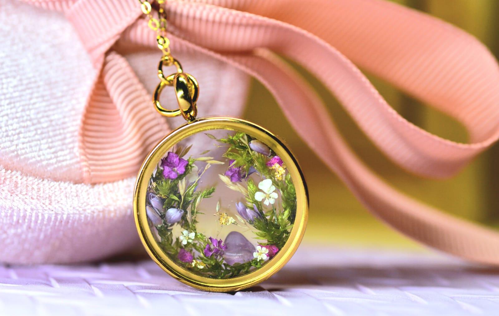 Le médaillon renferme des fleurs et herbes sechées provenant du Sanctuaire du Mont